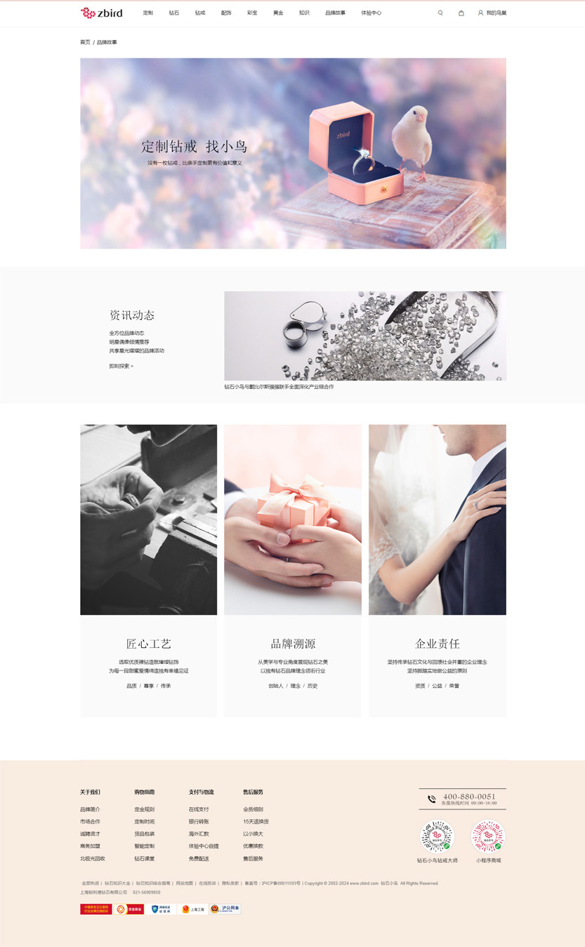 钻石小鸟创立于2002年,现已在全国14个城市设立线下体验中心。其上海旗舰体验中心在2015年1月全新升级开幕,占地2000平米,荣居全亚洲最大钻石珠宝体验中心。